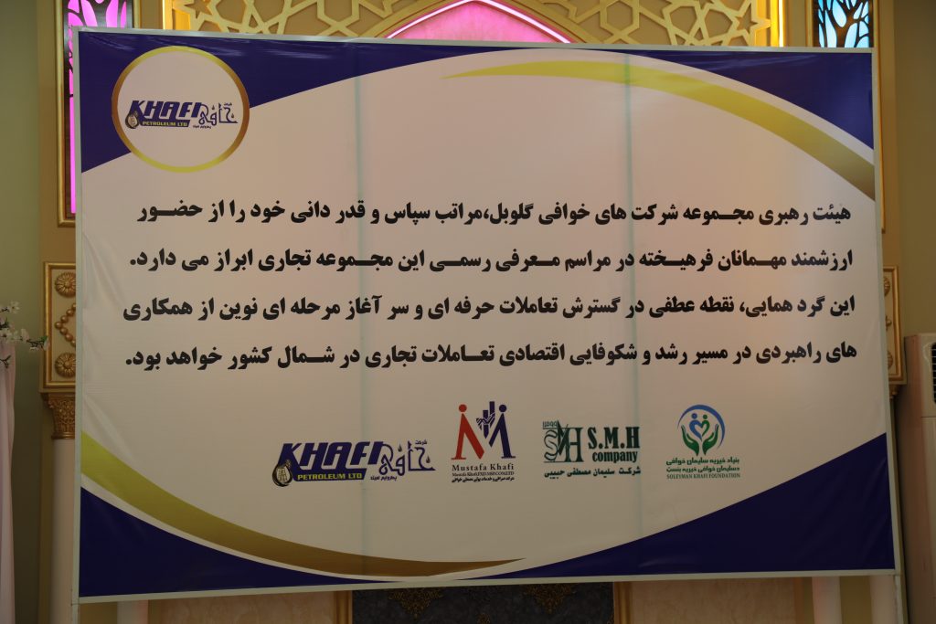 در شامگاه یکشنبه، مورخ ۱ سرطان ۱۴۰۴، با الطاف بیپایان حضرت ذوالجلال و الاکرام و در آستانهی آغاز فصلی نوین از همافزایی و شکوفایی اقتصادی، مراسم باشکوه معرفی مجموعه شرکتهای خوافی گلوبل و گشایش رسمی کٌمپلکس شرکت های خوافی گلوبل شامل (صرافی، پطرولیم، صنعت ذوب آهن، بنیاد سلیمان خوافی) در شهر تاریخی و تجارتی مزار شریف، با حضور گرم و پرصلابت نخبگان عرصه تجارت، صرافان و نمایندگان برجستهی سکتور خصوصی ولایت بلخ، با شکوه و عزیمت خاص برگزار گردید.
